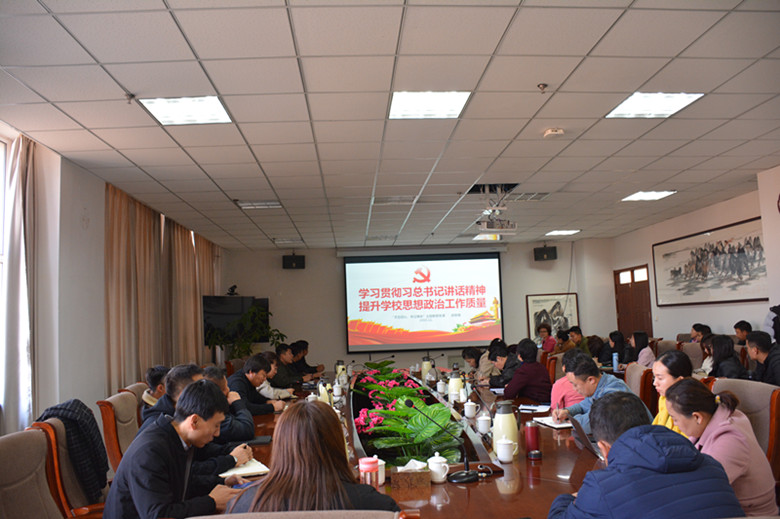 根据best365“不忘初心、牢记使命”主题教育工作安排,11月14日上午,在综合楼1102会议室,学校党委副书记胡春梅以“学习贯彻习近平总书记讲话精神提升学校思想政治工作质量”为题讲授主题教育专题党课,马克思主义学思政课教师、各学院团总支书记、辅导员参加学习。
