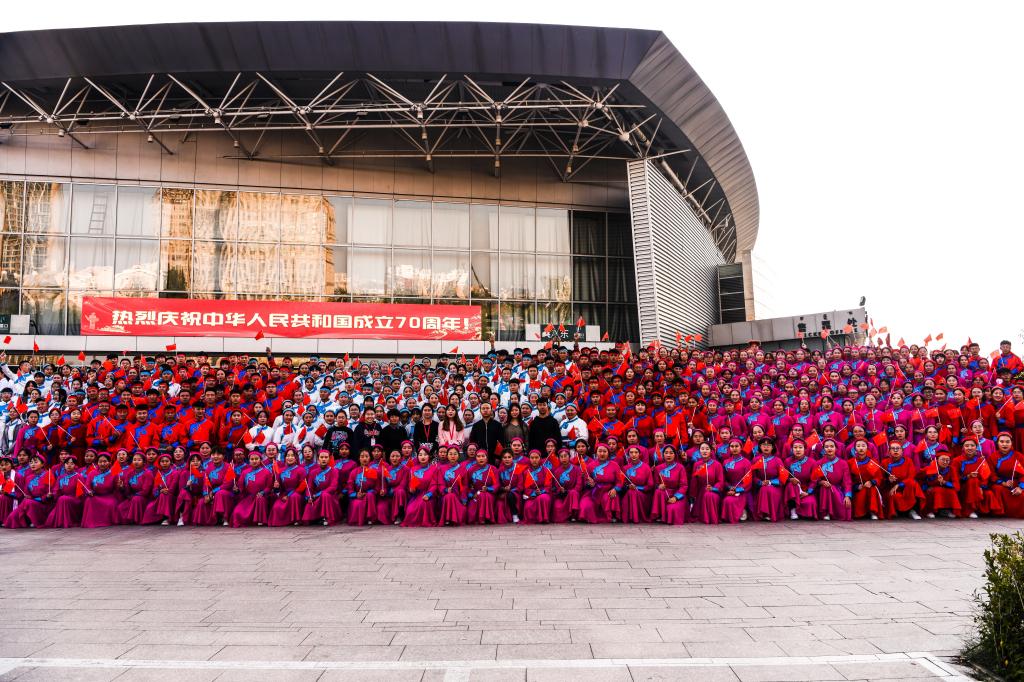 9月27日下午,“礼赞新中国 奋进新时代”内蒙古自治区庆祝中华人民共和国成立70周年群众大合唱在呼和浩特隆重举行。由音乐学院、外国语学院、教育学院443名同学组成的学生合唱团代表学校赴内蒙古体育馆参加此次群众大合唱。