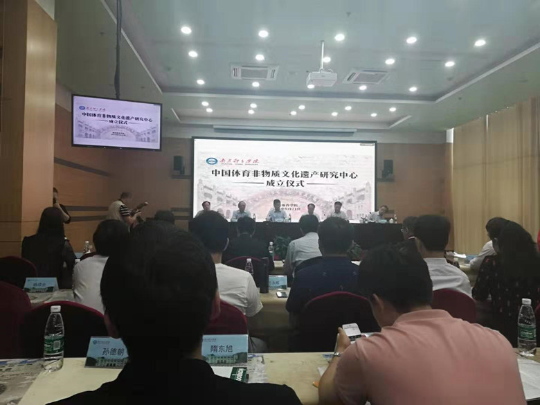 参加此次会议的有南京体育学院的校长杨国庆研究员、国家体育总局体育文化发展中心主任崔乐泉研究员、文化部非遗司司长陈通、天津体育局副局长张欣教授、天津社科院出版社社长张博以及来自各省市自治区的百余位专家教授。揭牌仪式之后,国家体育总局体育文化发展中心主任崔乐泉研究员、文化部非遗司司长陈通与各省市自治区的专家代表进行座谈并发表了讲话。