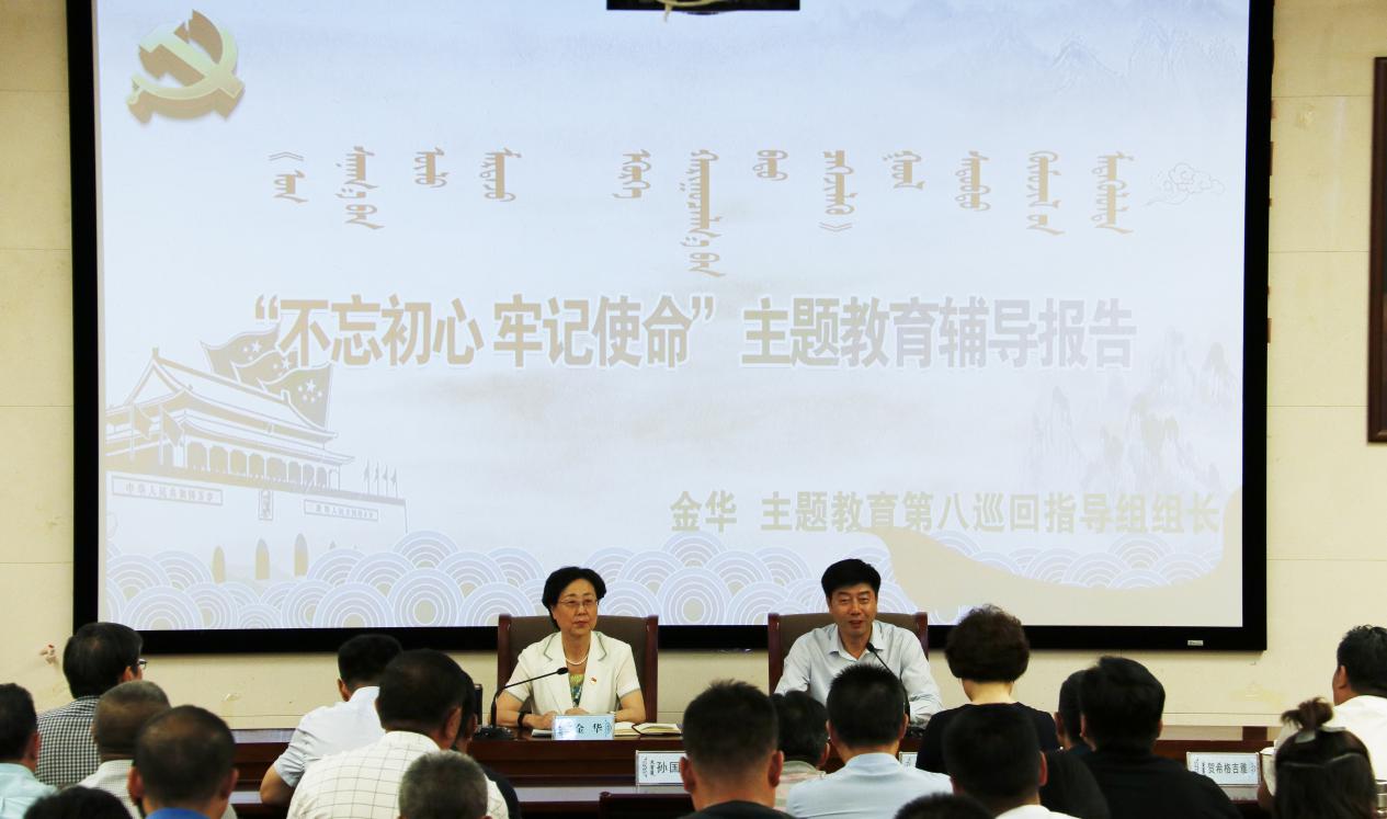 报告会上,金华组长根据习近平总书记在内蒙考察并指导“不忘初心、牢记使命”主题教育时提出的“四个到位”精神,结合巡回指导第一批主题教育工作实际,从四个方面就如何开展好主题教育进行了深入的阐述。一要切实提高政治站位,充分认识开展此次主题教育的重大意义。二要准确把握主题教育的目标任务、总要求。三要紧密结合,把学习教育、调查研究、检视问题、整改落实贯穿始终。四要加强组织领导。
