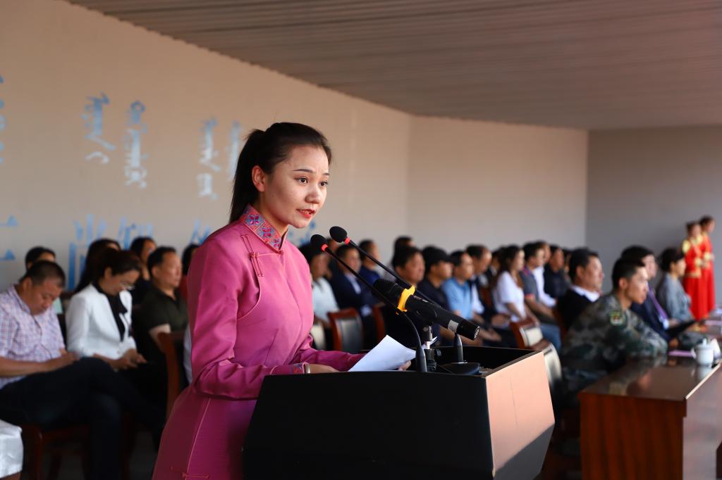 首先,学校党委副书记、校长格日乐图致辞。格校长在致辞中,代表全体师生员工,向2019级新同学表示热烈欢迎和衷心的祝贺。格校长向同学们介绍了学校的发展历程以及学校事业发展取得的成绩,格校长指出,近年来学校办学美誉度和整体竞争力不断提升,这些成绩凝聚了一代又一代民院人的努力奋斗,立足新时代,我们要努力开创学校各项事业发展的新局面,希望新加入民院大家庭的学子们要志存高远,永葆赤子心,谨记习近平总书记教诲,不负殷殷重托,以社会主义建设者和接班人的使命担当,为实现中华民族伟大复兴中国梦贡献青春力量;希望同学们脚踏实地,练就真本领,在充分了解大学学习生活特点的基础上,树立明确的目标,利用好各种资源和环境,像海绵汲水一样汲取知识,深入分析思考,一步一个脚印,攻坚克难,在青春的征途上奋斗、启航;希望同学们学会生活,拥有健康身心,保持积极乐观的态度、成熟良好的情绪,学会包容与合作,书写纯真与美好的青春岁月;希望同学们振奋精神,认真参训,培养良好的精神面貌和坚韧的意志品质,服从命令,遵从指挥,敢于争先,树立集体协作精神,展示民院学子勃勃生机和奋发向上的精神风貌,以优异的成绩向新中国70周年致敬献礼!