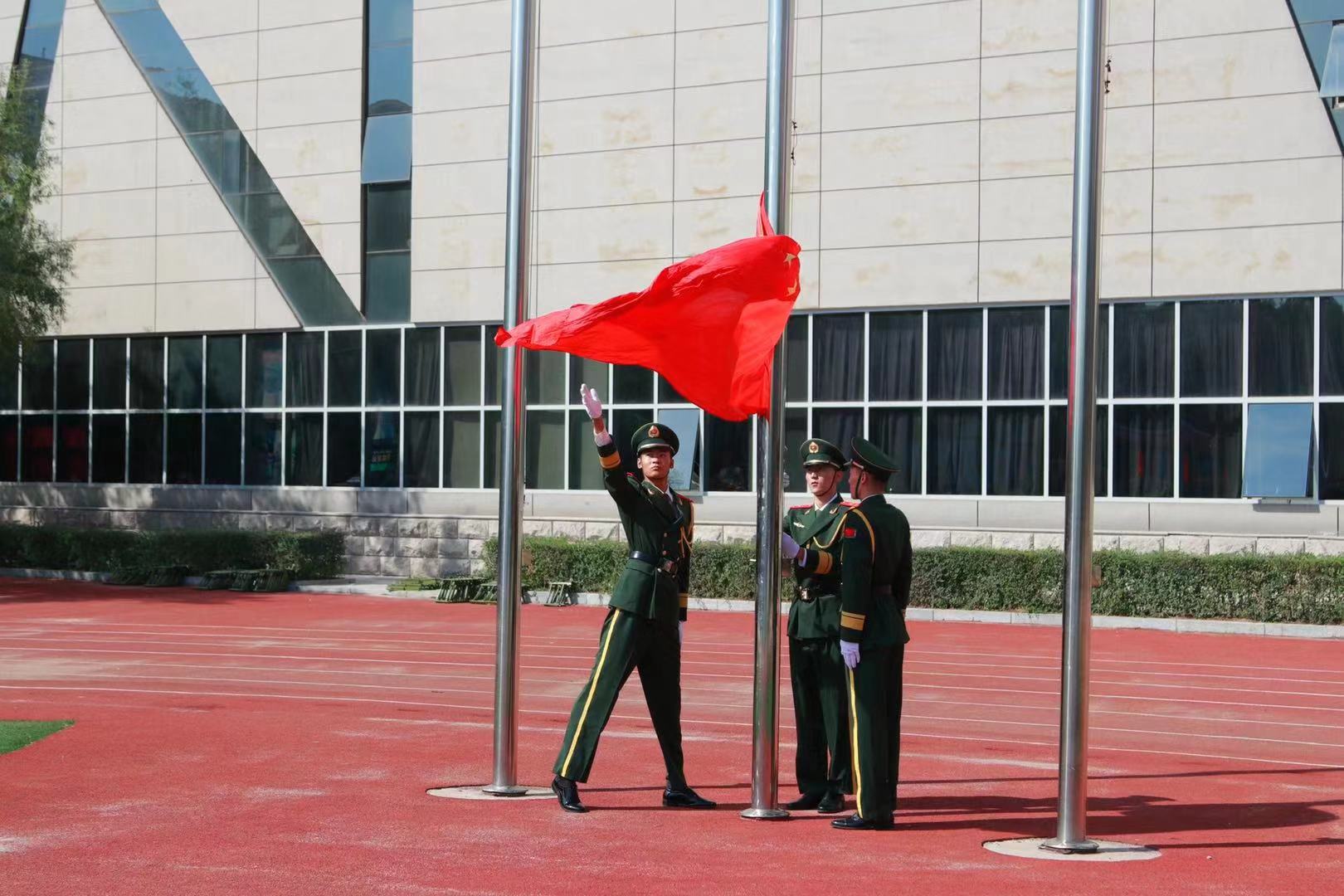 大会在激昂庄重的国歌声中正式拉开帷幕,全体2019级新生高喊“五星红旗,我为你自豪!伟大祖国,我为你骄傲!我爱你,中国!”的口号,向祖国深情告白。