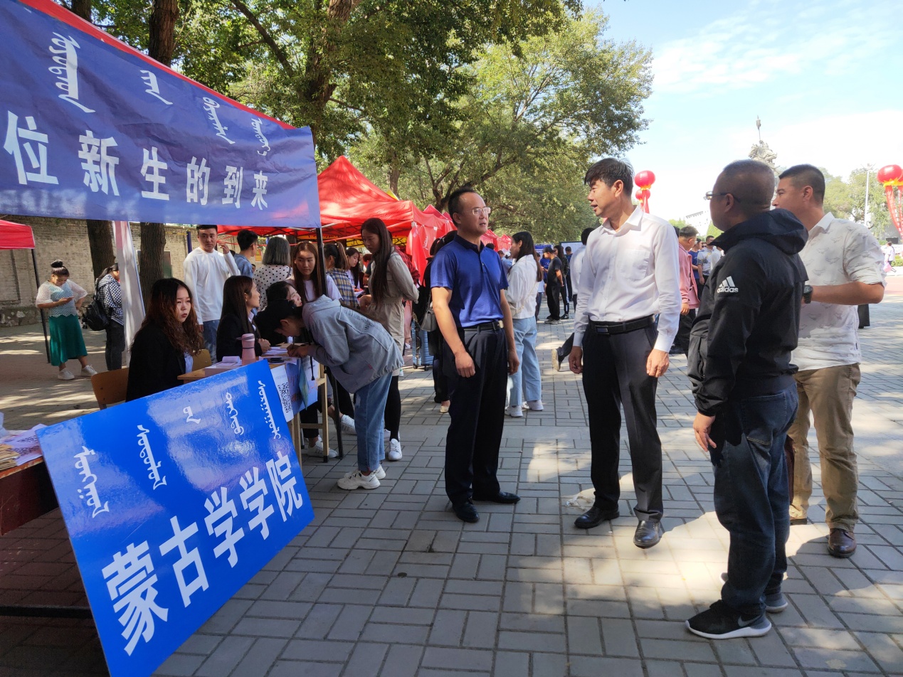 8月31日上午,学校党委书记孙国权,党委副书记、校长格日乐图,党委委员、副校长阿拉坦仓、副校长纳丽娜在党政办公室、学生工作部、教务处、保卫处等相关部门负责同志陪同下到天骄广场检查了迎新工作现场。
