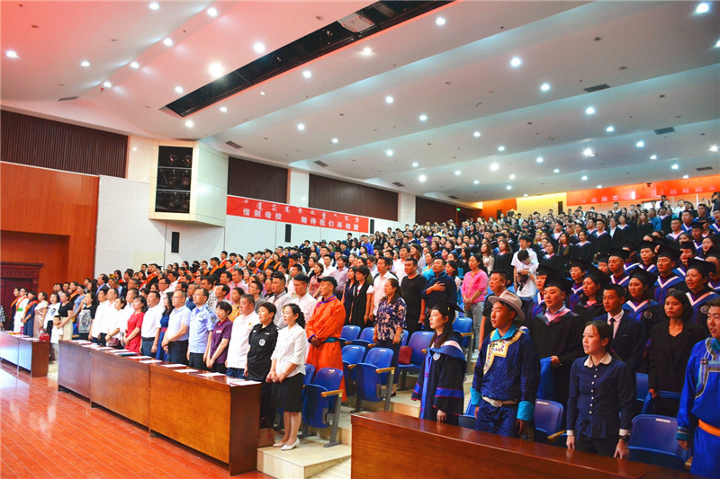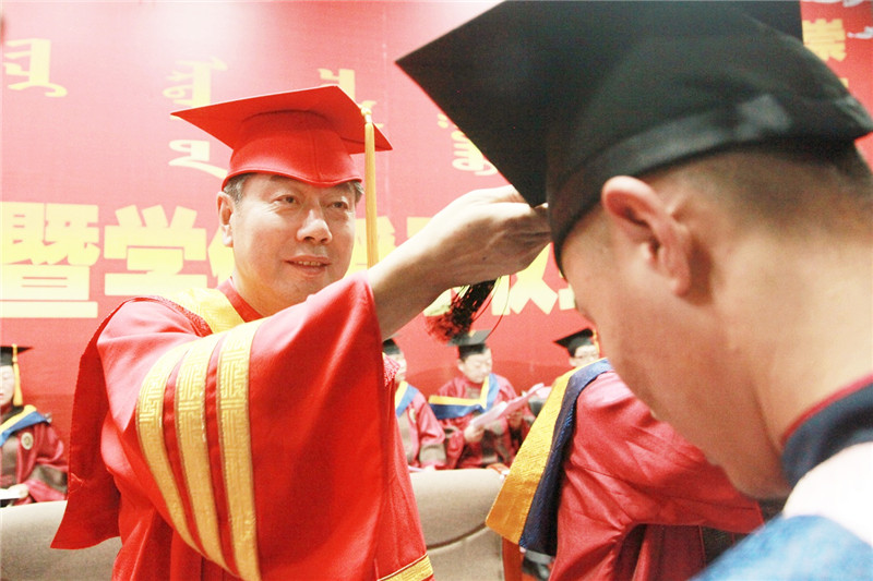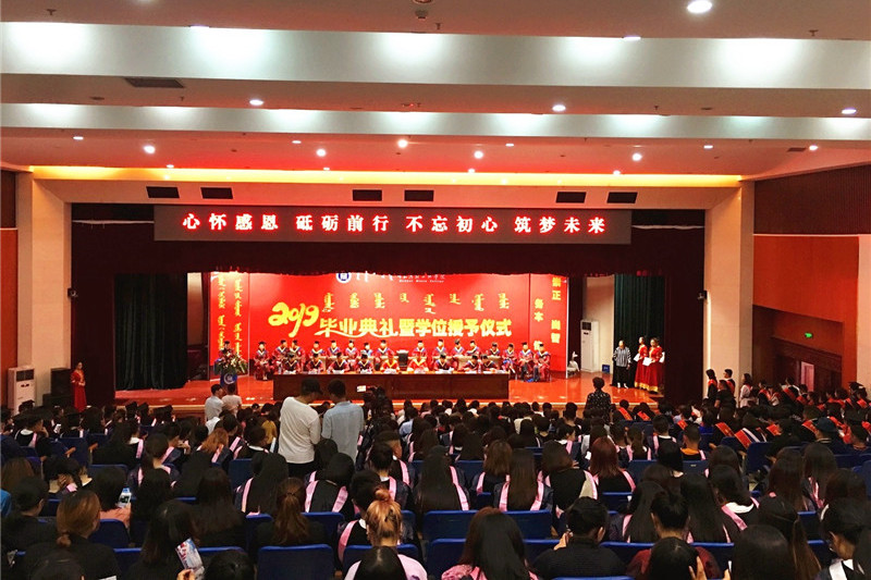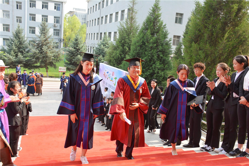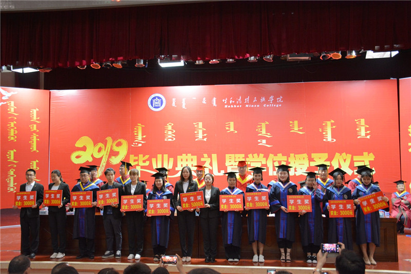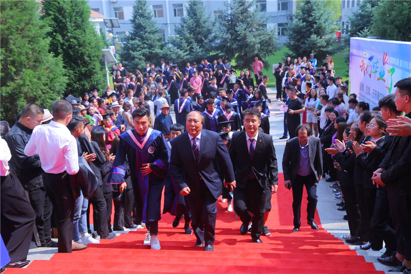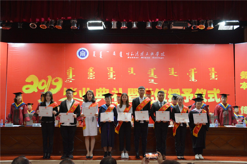 毕业典礼上教务处处长额尔敦布和宣读了学校《best365官网中文版登录2019届第一批授予学位情况》;15个二级学院院长分别为毕业生寄语祝福,校领导为2019届毕业生代表颁发了毕业证书并拨穗正官。