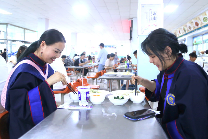 典礼结束后,学生餐厅贴心的为毕业生准备了晚餐,师生同坐一桌,共同品尝“毕业饺子”。
