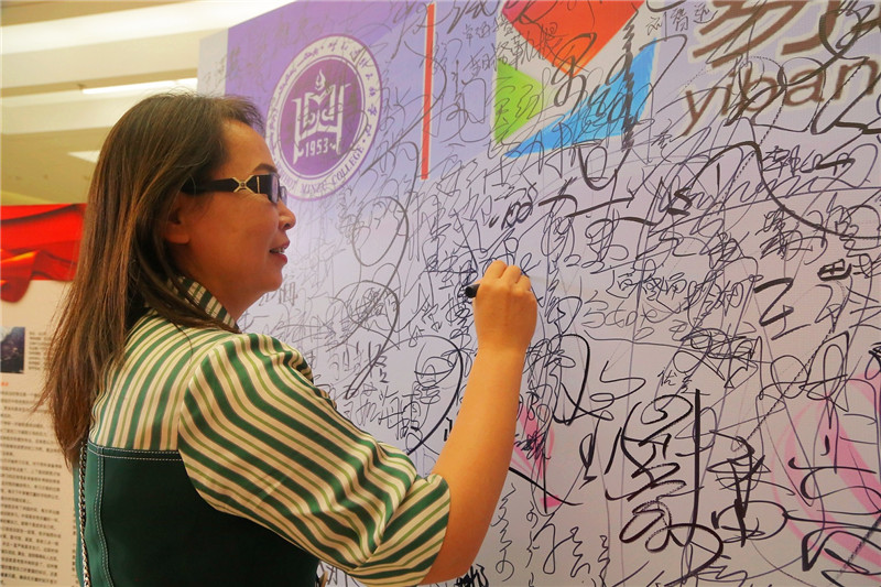 2019届毕业生代表向校领导、老师、家长代表献上了圣洁的哈达,表达了对学校、对老师、对家长深深的感恩之情。