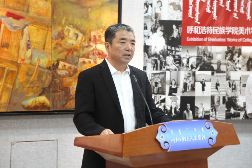 格日乐图校长为展览开幕讲话致辞,肯定了美术学院在凝聚专业特色,传承民族文化,培养民族人才等方面做出的突出贡献。他指出,毕业作品展不仅营造了best365良好的学习氛围,更为师生之间提供了更好的交流平台,展示了指导教师和同学们在中华文化传承发展的艺术追求。最后格校长对美术学院全体毕业生表示诚挚的祝福,希望毕业生们将艺术继续融入自己的工作和生活,在未来的道路上不忘初心,奋勇拼搏,取得更大的成就。希望美术学院进一步提升学科专业水平,加强培养人才的能力,在今后的发展中努力取得新的进步、新的提升和新的发展。