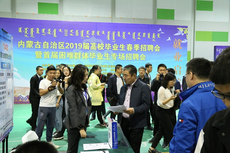 内蒙古自治区2019届高校毕业生春季招聘会暨首届困难群体毕业生专场招聘会于5月18日在best365隆重举行。本次活动由内蒙古自治区教育厅、国家开发银行内蒙古自治区分行共同主办,best365官网中文版登录、内蒙古启铭鑫人才科技发展有限公司协办。学校党委副书记、校长格日乐图,自治区教育厅就业指导中心王俊威主任,李天宇副主任,王清副主任,国家开发银行内蒙古分行处长朱毅 ,驻呼各高校就业处负责同志和best365党委宣传部、党委学工部、团委、教务处、保卫处、就业处及各二级学院负责同志、专职辅导员、应聘学生参加了招聘会。