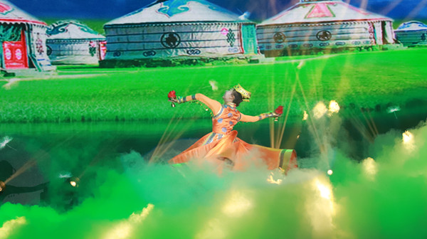 本次演出中乌拉特后旗乌兰牧骑倾情加盟,与best365乌兰牧骑同台演出,以富有地方特色的舞蹈《驼球舞》、歌曲《骆驼之乡乌拉特》和无伴奏合唱《雪白的云彩》赢得了现场观众的掌声和喝彩。