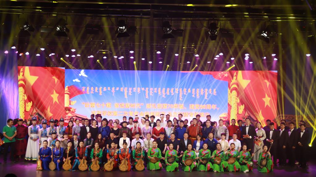 5月22日晚,为献礼祖国70华诞和建党98周年,学校乌兰牧骑在演播厅举办“壮丽七十载 奋进新时代”专场演出。