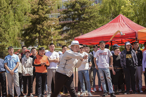 学校党委书记孙国权点燃象征着体育精神的圣火,由火炬手传递圣火种,最后体育学院白图日根点燃了圣火盆。