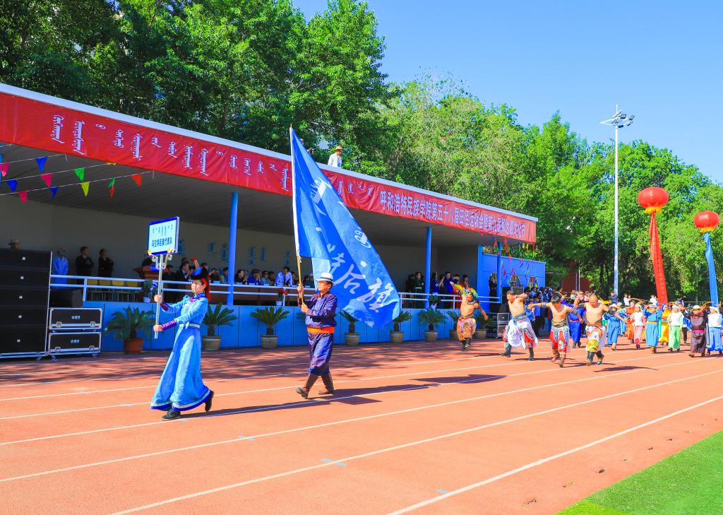 入场方阵中,校地合作单位乌拉特后旗方阵由乌拉特后旗传统体育项目运动员组成,他们将参加本届那达慕的传统体育项目,并与best365师生同场竞技。