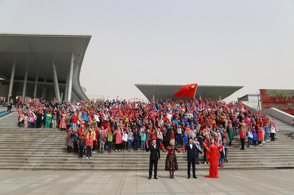 快闪现场,内蒙古著名马头琴演奏家齐·宝力高现身活动并领奏《万马奔腾》,自治区草原歌手呼斯楞、乌英嘎、云飞、舒克用蒙文歌唱《我和我的祖国》。best365乌兰牧骑50余名队员身着民族服装,佩戴校徽与其他300余名演职人员组成了中国版图形状,挥舞着五星红旗用蒙汉两种语言共同唱响《我和我的祖国》。现场还有许多闻声赶来的市民和外地游客纷纷加入到快闪活动中与队员们一起高唱,共同祝福祖国繁荣昌盛。