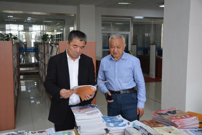 4月16日下午,格日乐图校长莅临图书馆调研指导工作,图书馆祁根锁馆长陪同。
