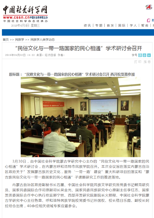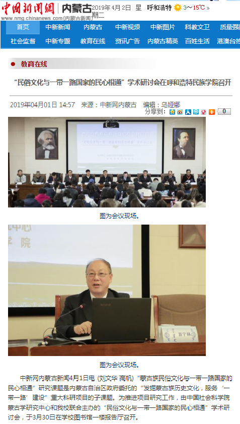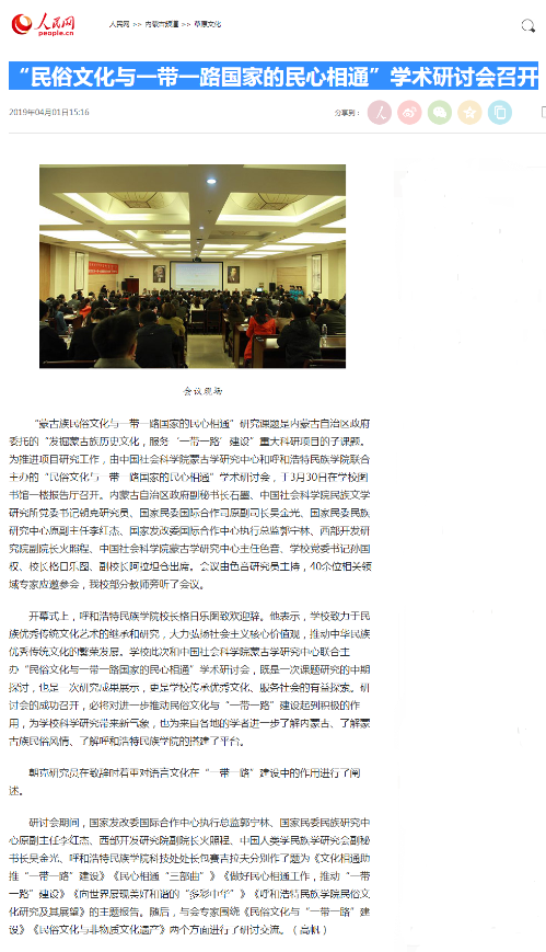 3月30日,“民俗文化与一带一路国家的民心相通”学术研讨会在best365召开。经宣传部积极与媒体取得联系,人民网、中国新闻网、新华网、《民族画报》、中国社会科学网、内蒙古蒙古语卫视、内蒙古旅游报微信公众号等媒体进行了报道,取得了社会各界的广泛好评和关注。