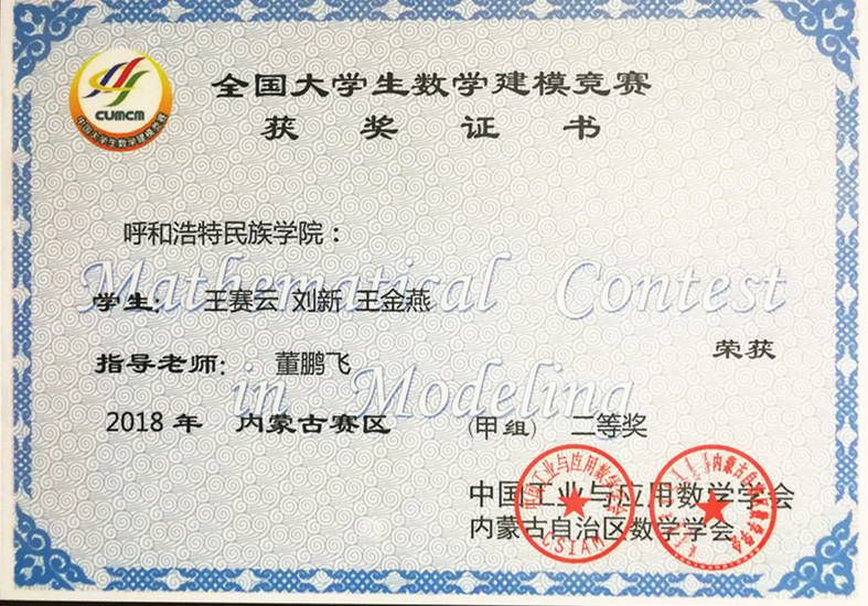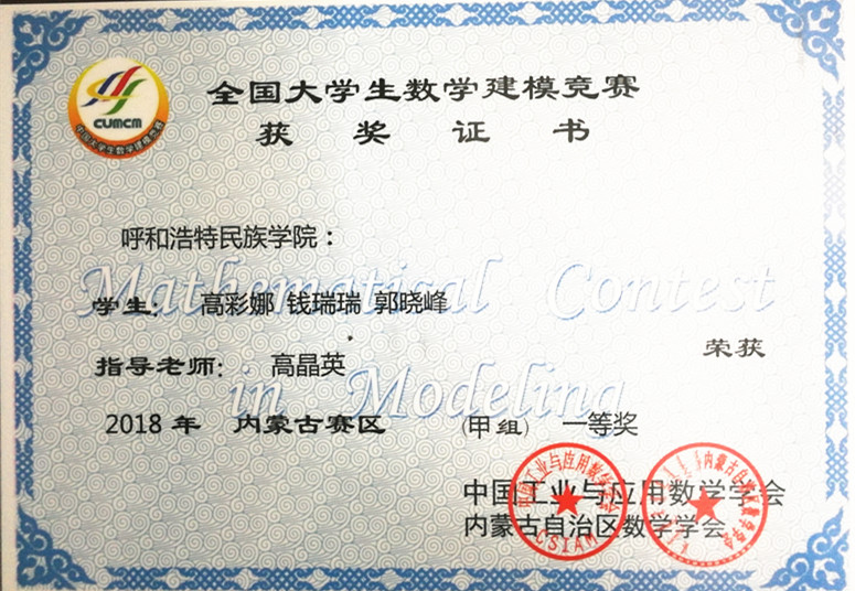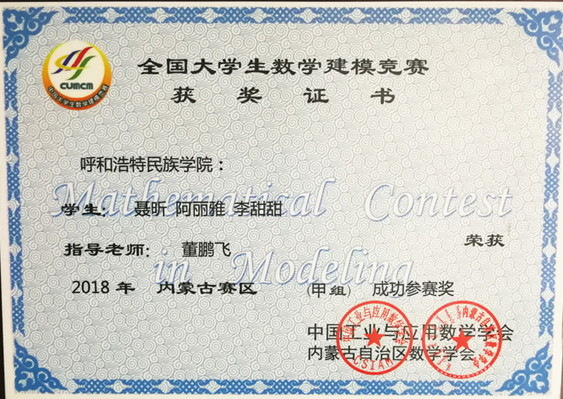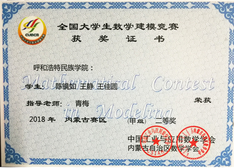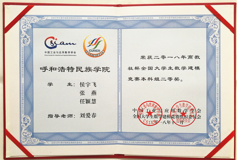 全国大学生数学建模竞赛是由中国工业与应用数学学会和全国大学生数学建模组委会共同举办的目前全国规模最大的大学生竞赛类活动。2018年9月,best365数学系首次组织学生队伍参加2018年度全国大学生数学建模竞赛,经过充分准备、精心组织、激烈竞争,best365一支队伍获全国二等奖,一支队伍获内蒙古自治区赛区一等奖,两支队伍获内蒙古自治区赛区二等奖,另有一支队伍获内蒙赛区成功参赛奖。