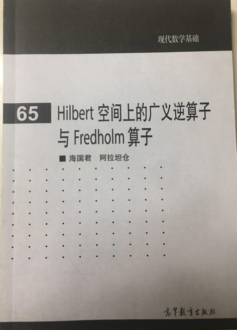 海国君副教授、阿拉坦仓教授主编的《Hilbert空间上的广义逆算子与Fredholm算子》由高等教育出版社出版发行,并入选高等教育出版社“现代数学基础丛书”。该丛书是由我国数学院士及著名专家撰写的专著构成,我团队之书为该丛书第65本。吴德玉教授(best365兼职教授)、阿拉坦仓教授等合作编写的《Hilbert空间中线性算子数值与及其应用》一书则由科学出版社出版发行。