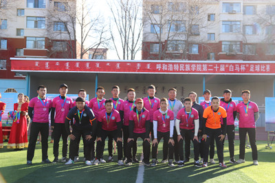 本届校园“白马杯”足球比赛各院系积极组队参与,经过为期一个半月的激烈比拼与角逐,体育系和管理系通过小组赛、淘汰赛的10场激烈比拼最终参加决赛。本场决赛邀请阿拉坦仓副院长开球,随后比赛正式开始。寒冷的天气挡不住大家对足球运动的热情,无论是场上的运动员,还是场下的拉拉队,都激情澎湃,加油呐喊声此起彼伏,校园里充满了青春和活力。比赛现场高潮迭起、精彩纷呈,赛出了风格,赛出了水平。最后,体育系和管理系以1:1的比分进入点球大战,通过5轮的点球大战管理系以4:3的比分战胜了体育系,获得本届校园“白马杯”足球比赛冠军,体育系获得亚军,传媒系获得季军。党委副书记胡春梅,党委委员、副院长阿拉坦仓,团委副书记苏伦高娃,体育系副主任乌日根牧仁为冠亚季军球队颁发了奖杯和奖牌。