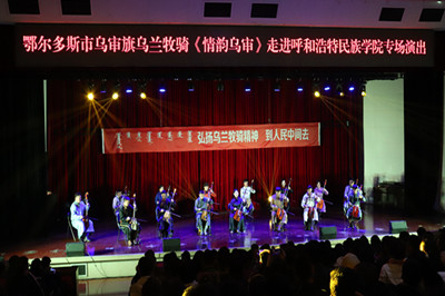 为深入学习宣传贯彻习近平新时代中国特色社会主义思想,落实习近平总书记关于乌兰牧骑事业发展重要指示精神,培育和践行社会主义核心价值观,大力弘扬乌兰牧骑精神,11月7日晚,鄂尔多斯乌审旗乌兰牧骑《情韵乌审》走进best365开展专场演出。校党委副书记胡春梅,校党委委员、纪委副书记、监审处处长王玉玲出席,校乌兰牧骑队员、大学生艺术团队员和学生代表共800余师生观看了演出。