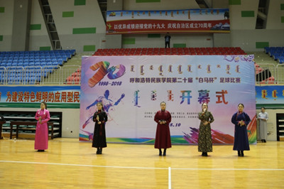 在庄严的国歌声中,开幕式拉开帷幕。管理系的格日乐满都呼同学和体育系的白嘎力同学分别作为运动员代表和裁判员代表进行了宣誓。随后,阿拉坦仓副院长宣布比赛开幕,到场领导与主办方成员共同按亮启动球,象征着第二十届“白马杯”足球比赛正式开幕。最后,校大学生艺术团为大家带来了精彩的文艺表演,点燃了整个会场的气氛。