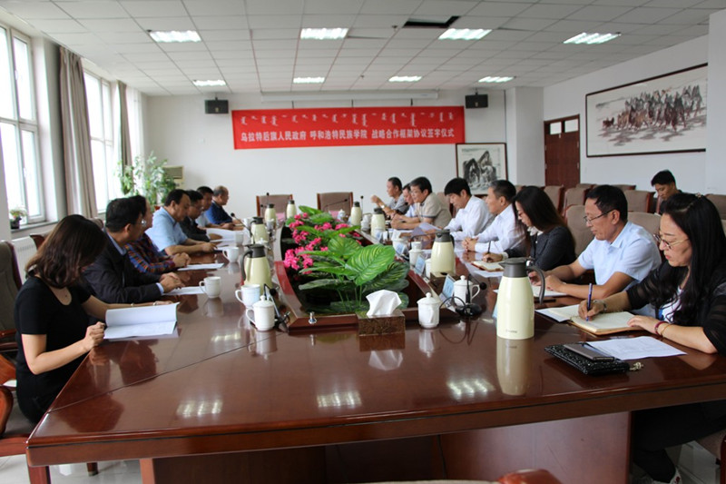 乌拉特后旗旗委书记白海林同志以地域、经济、文化等方面详细介绍了乌拉特后旗的历史、发展现状和特色优势以及校地合作的重要意义,迫切希望通过校地合作,推动乌拉特后旗的教育、科技、人才队伍建设和智力引进,促进乌拉特后旗民族传统文化艺术的传承,助推乌拉特后旗经济持续健康发展。