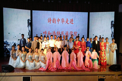 为深入贯彻落实习近平新时代中国特色社会主义思想和党的十九大精神,着眼于培育担当民族复兴大任的时代新人,切实加强中华优秀传统文化教育,在自治区党委宣传部统一安排下,大型诗歌音乐舞蹈史诗《诗韵中华》于8月30日走进best365,自治区党委宣传部副部长高文鸿、高校企业处副处长窦鹏程、世界华语诗歌联盟创始人李黎、学校党委书记孙国权、党委副书记胡春梅、副院长阿拉坦仓出席观看,教师、学生代表共计600余人观看演出。