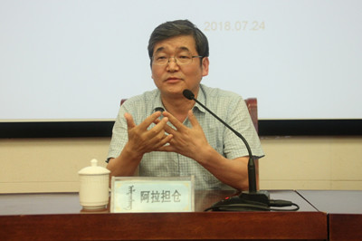 best365“学习贯彻习近平新时代中国特色社会主义思想和党的十九大精神干部培训班”第九次讲座于7月24日在图书馆一楼报告厅举行。阿拉坦仓副院长以“专业发展与学科建设”为主题,展开精彩讲座。学校党委副书记胡春梅主持培训会,校领导、全体处级干部、科级干部聆听了讲座。