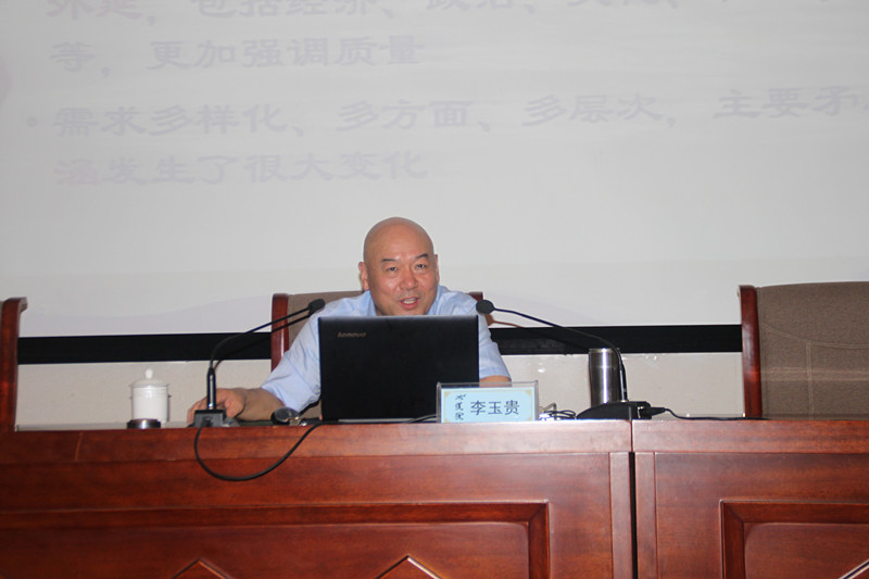 为深入学习贯彻习近平新时代中国特色社会主义思想和党的十九大精神,推动best365转型发展和内涵建设,best365于6月14日下午在图书馆一楼报告厅举办了学习贯彻习近平新时代中国特色社会主义思想和党的十九大精神干部培训班开班式及其第一场讲座,内蒙古党校政治学教研部主任李玉贵教授应邀到best365开展讲座。学校党委书记孙国权出席了开班式,副书记胡春梅主持开班式。best365全体处级干部和科级干部聆听了讲座。