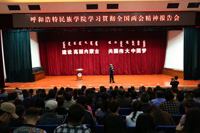 胡春梅副书记作总结讲话时表示,阿拉坦仓委员的报告从学习贯彻习近平新时代中国特色社会主义思想、维护以习近平同志为核心的党中央权威和集中统一领导、牢固树立“四个意识”的政治高度,结合自己的参会经历,向师生传达了全国两会精神,传达了中央和自治区的决策部署,与大家分享了自己的所见所闻所思所想,是一场精彩的报告。希望与会师生在会后加深领会、充分理解两会的意义,进一步沟通交流,不断把学习贯彻两会精神引向深入。
