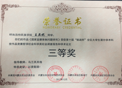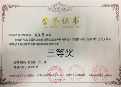 此次竞赛是由自治区团委、自治区科协、自治区教育厅及自治区学生联合会联合主办。比赛旨在进一步塑建我区青年学生创新创业活动品牌,不断优化科技创新环境,吸引更多学生投身到科技创新活动中,勇于创新创造,为打造祖国北疆亮丽风景线做出应有贡献。同时,良好的成绩也进一步增强了best365大学生勇于创新创造的信心和刻苦钻研专业技术技能的决心,为大学生全面健康成长和良好校风学风建设营造了浓厚的科技学术氛围。(团委供稿)