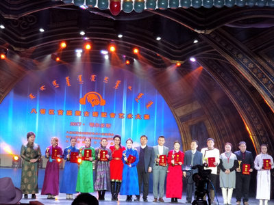 大赛分大学生组、个人表演(成人)组、中小学生组、团体表演组四类。经初赛、复赛、决赛激烈角逐,中央民族大学、西北民族大学、内蒙古大学和best365官网中文版登录的24名学生入围决赛。决赛由自我介绍、配音段表演、答题和个人才艺展示等环节组成,最终,best365传媒系2015级播音与主持艺术班的乌日汉获得第一名,斯日古楞朝克图获得第二名,格根珠拉获得第三名,另有7名同学获得优秀奖,best365同时获得优秀组织奖荣誉称号。