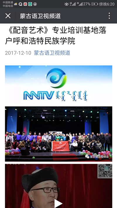 12月9日上午,传媒系与内蒙古配音艺术协会在best365演播厅共同举办了《配音艺术》专业课程走进校园课堂活动。内蒙古广播电视台有关领导、内蒙古广播电视台译制中心和内蒙古民族语电影译制中心的相关领导和配音演员以及best365蒙古语言文学系的部分领导和汉蒙翻译教研室的老师们出席了活动。内蒙古广播电视台蒙古语卫视、蒙古语广播、内蒙古日报社和中国蒙古语新闻网等媒体单位对此次活动进行了全程报道。