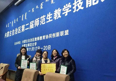 11月18日—19日,内蒙古自治区第二届师范生教学技能大赛在内蒙古师范大学举行,best365由汉语言文学系副主任哈琴教授带队,指导教师杜勍妹教授、白志坚副教授和2015级小学教育(汉语言文学方向)2班学生汪艳娜、3班学生靳敏参加了比赛。