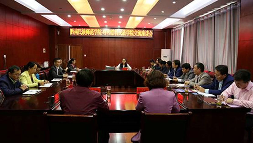 11月10日,考察团一行在黔南民族师范学院考察学习,重点考察了硕士点申报的经验和做法。座谈会上,阿院长介绍了best365的发展历程和特色优势,以及近年来学校在教学科研、师资队伍和人才培养等方面的成就和经验。阿院长表示,民族院校一家亲,双方应建立友好合作关系,团结协作,共同发展。黔南民族师范学院副校长黄胜对best365的办学特色给予高度评价,黄胜副校长指出,申硕工作最重要的是紧抓国家发展战略的需要,充分论证学校自身需求,在学士学位授予单位的基础上开展硕士专业教育,提升人才培养的质量和层次。会上,两校就硕士点的申报条件和机构建设,以及小学教育和学前教育专业人才培养模式展开对口交流。