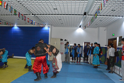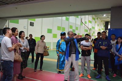 卢沃棠先生一行首先参观了best365体育馆,现场体验及详细了解了蒙古族“搏克”、“民族健身操”、“沙嘎游艺”、“沙嘎哈日靶”、“蒙古象棋”、“包根吉日格”、“传统射箭”、“传统布鲁”等传统教学项目。随后,考察了校园及周边环境,现场听取了学校工作情况汇报,并就有关问题与校领导进行了交流。