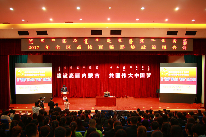 报告中,刘奇凡书记以“两个一百年”、自治区成立70周年、祖国北疆亮丽风景线、七网七业七新、打“虎”拍“蝇”、大飞机试飞、人工智能、“中国梦”等八个关键词为切入点,系统领学了习近平总书记系列重要讲话,特别是考察内蒙古时的重要讲话精神,深入解读了十八大、十八届六中全会和自治区第十次党代会的精神,通过大量详实的数据和图片,认真回顾、高度概括了祖国繁荣发展与自治区成立70年所取得的辉煌成就,全面介绍了国家和自治区经济社会发展、反腐倡廉的良好态势,以及世界科技发展的新形势,并对青年学生在坚定理想信念与“四个自信”、励志成长成才等方面提出了明确的希望和要求。