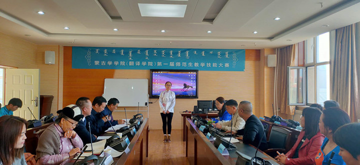 为加强学生学科理论知识和实践教学能力,结合学校有关要求,蒙古学学院(翻译学学院)于9月20日上午8时在综合楼301室举办了第一届师范生教学技能大赛。本次大赛邀请了呼和浩特市赛罕区教育局古日扎布研究员、内蒙古师范大学附属中学额尔登乌拉老师、呼和浩特市蒙古族学校贺其叶勒图老师及蒙古学学院(翻译学学院)中学教育教研室主任常玉梅等四位老师担任评委。蒙古学学院(翻译学学院)院长王福清、党总支书记周双喜、蒙古学学院(翻译学学院)全体老师和部分学生代表参加。