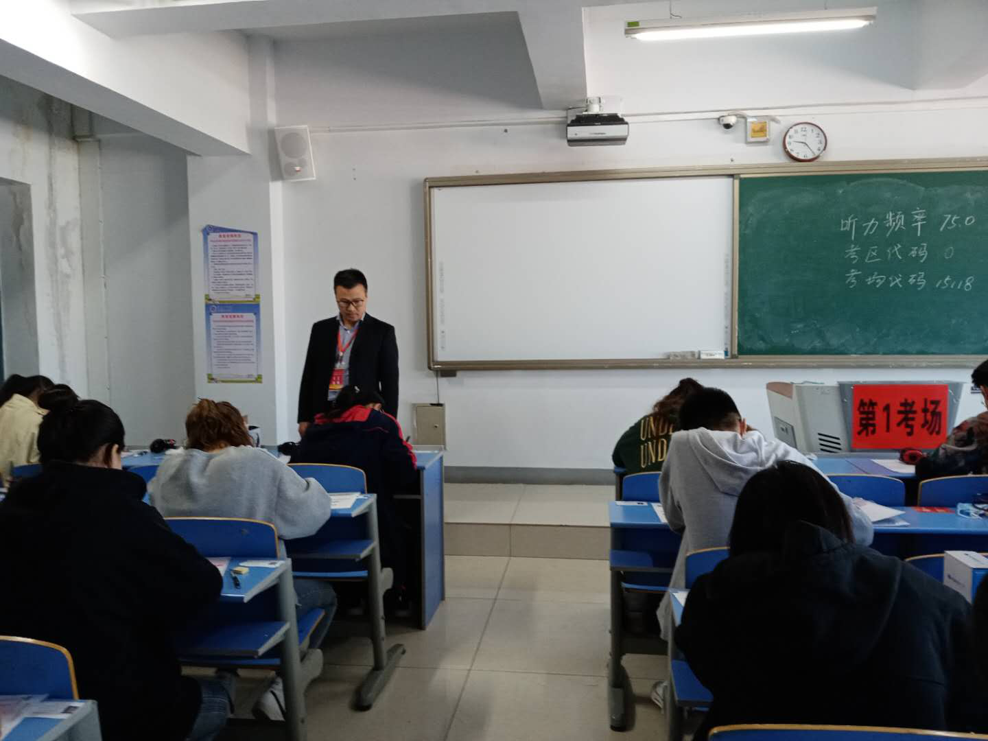 考试当天,副校长纳丽娜现场指挥,并对考试组织工作做出严谨、规范的要求;自治区考试中心巡视员与教务处相关领导巡查了各考场,检查考务办公室、教室监控系统等多个点位,并对考试组织、考场环境、考场秩序及疫情防控等工作进行了实地查看;考生入考场指静脉验证过程井然,各考场考试秩序平稳有序;监考人员严格按照考务工作规范的要求,认真履行监考职责,工作认真细致。本次考试将疫情防控与考试考务工作齐抓共管,形成合力,抓细抓实,确保了每个考生的生命安全与考试公平。