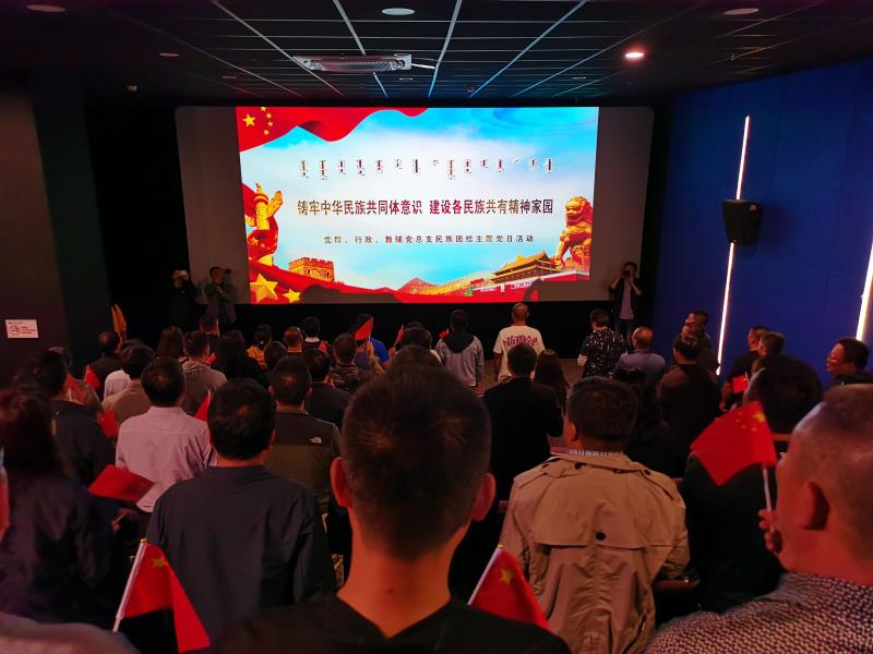 正值学校第37个民族团结活动月之际,党群、行政、教辅党总支联合开展“铸牢中华民族共同体意识,建设各民族共有精神家园”的主题党日活动。9月18日下午,党群、行政、教辅党总支组织全体教职工党员赴影院观看爱国主义题材影片《蓝色防线》,学校党委书记孙国权、校长格日乐图同志以普通党员身份参加了本次活动。