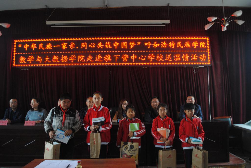 为全面深入持久开展民族团结进步创建,进一步巩固和发展平等、团结、互助、和谐的社会主义民族关系,9月23日上午数学与大数据学院走进旗下营中心学校举行送温情活动。参加本次活动的有学校党委委员、宣传部部长王玉玲,数学与大数据学院领导班子成员,就业指导处处长包仓,全国黄大年式教师团队成员,卓资县教育体育局副局长李兵,旗下营中心学领导班子成员及两校师生共300余人。