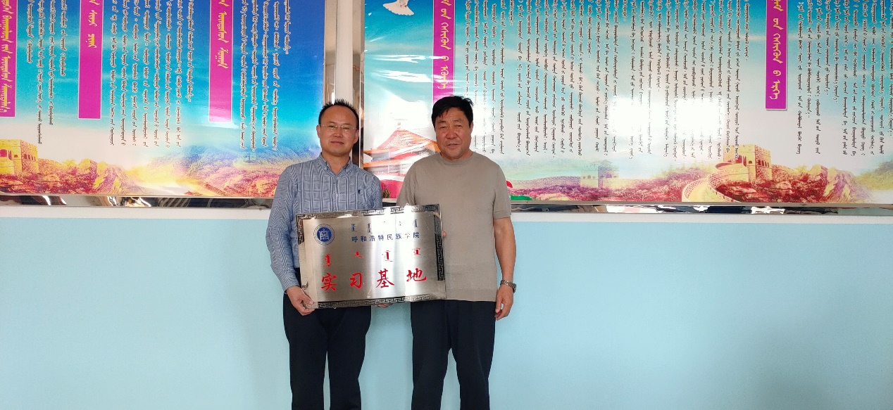 王院长与蒙古族学校格日乐图校长就建立蒙古学学院实习基地一事进行沟通协商,成功签署合作协议并在蒙古族学校举行了实习基地揭牌仪式。