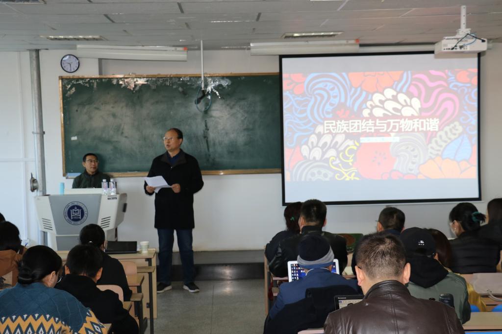 10月11日上午,在尚智楼312教室,民族学学院邀请全国人类学、民族学领域首位“长江学者”,复旦大学国家民委民族研究重点基地民族研究中心主任纳日碧力戈教授,为广大师生作了题为《民族团结与万物和谐》的学术讲座。讲座由包山虎院长主持。