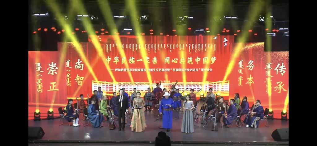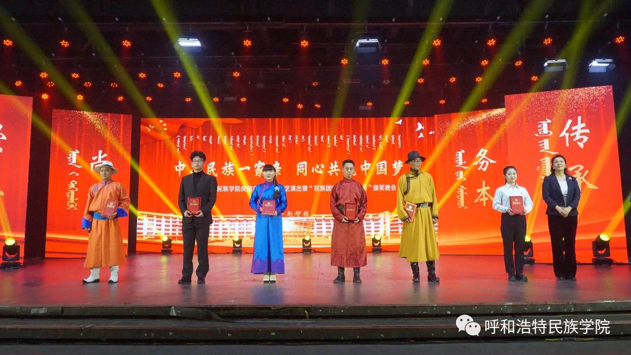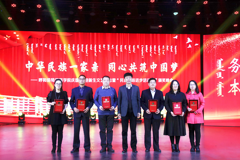 歌舞萦绕,红旗飘扬,10月25日晚7时,best365“中华民族一家亲 同心共筑中国梦”庆国庆、迎新生文艺演出暨“民族团结进步活动月”颁奖晚会在学校演播厅及图书馆报告厅同时举行。内蒙古自治区民族事务委员会党组成员、副主任特木勒、呼和浩特市民委四级调研员闫青、呼和浩特市民委社会发展科科长斯日古楞、学校领导、处级以上干部、受表彰集体和个人、师生代表齐聚一堂,共同观看了演出。