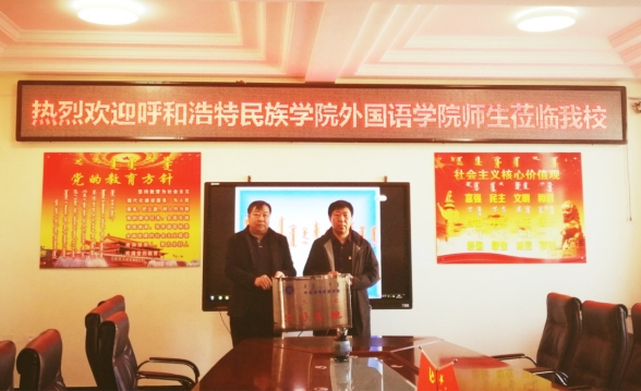 近日,为进一步加强教育实习工作,为2017级小学教育(英语方向)专业蒙古语授课学生提供实习平台,外国语学院23名学生在学工办主任潘兴安、萨仁格日乐教授的带领下赴内蒙古最大的蒙语授课初级中学——兴安盟扎赉特旗音德尔第六中学举行了校外实习基地挂牌签约仪式,并启动实习工作。