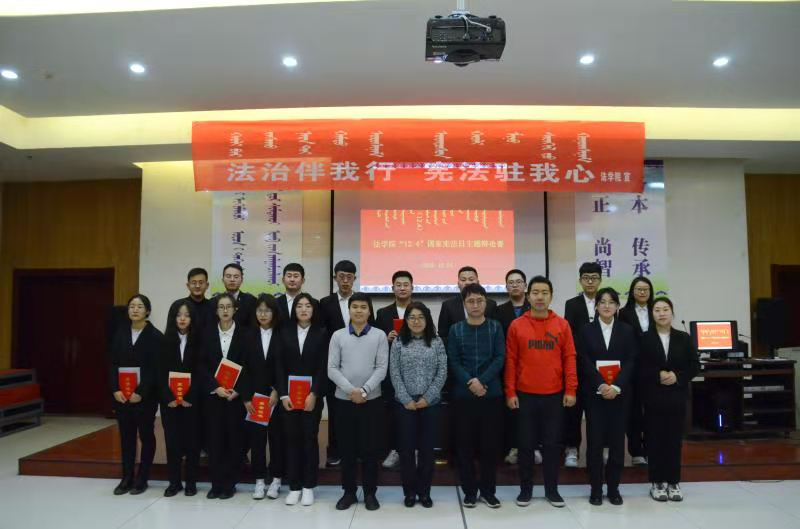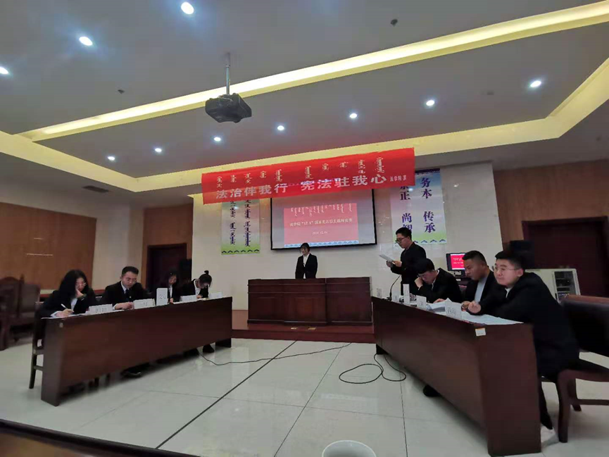 12月4日第七个宪法日来临之际,为深入学习贯彻习近平新时代中国特色社会主义思想,铸牢中华民族共同体意识,学习实践习近平法治思想,大力弘扬宪法精神,维护宪法权威,培养新时代优秀的法律人才,法学院在图书馆模拟法庭举办了“12.4”国家宪法日主题辩论赛。由法学院党总支书记乌兰其其格、副院长朝克图、团总支姜鹏、教研办公室主任白木仁、辅导员李超然等5位老师担任评委。