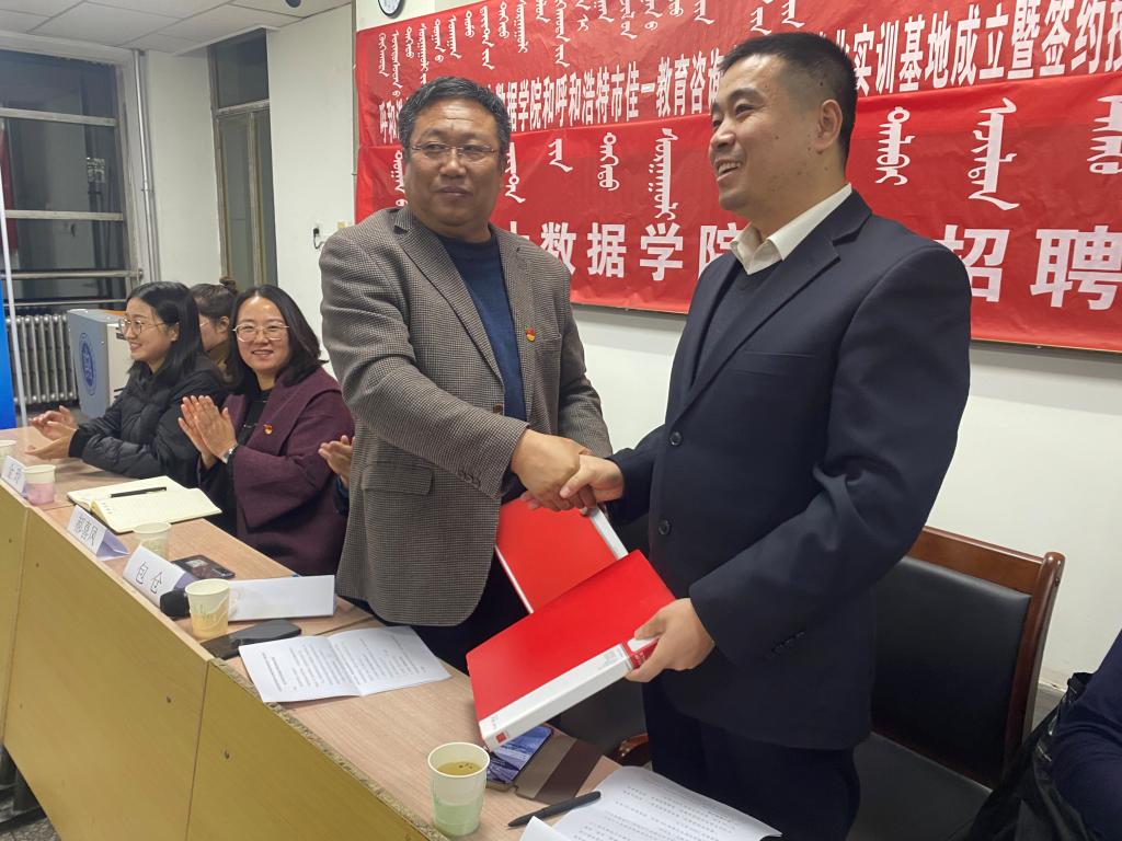 仪式上,我院代表布和朝鲁书记与佳一教育代表赵呈刚先生签订实训基地合作书,best365就业指导处处长包仓老师向佳一教育负责人授予实训基地牌匾。数学与大数据学院院长王海清教授和佳一教育内蒙古区域总监赵呈刚先生先后致辞。