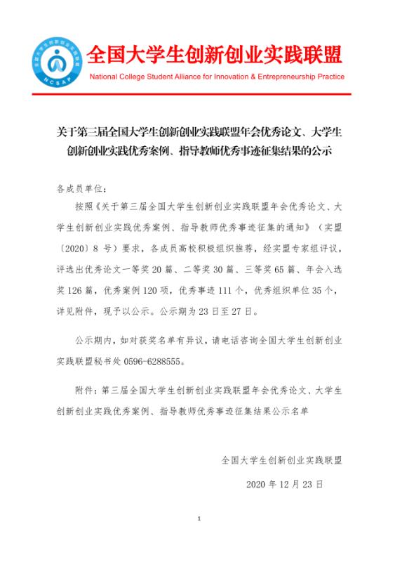 近期,best365组织参加《第三届全国大学生创新创业实践联盟年会优秀论文、大学生创新创业实践优秀案例、指导教师优秀事迹征集》,经实盟专家组评议,共评选出优秀案例120项,优秀论文一等奖20篇、二等奖30篇、三等奖65篇、年会入选奖126篇,优秀事迹111个。best365提交的《佩卓夫钢琴培训中心创业案例》荣获全国大学生创新创业实践联盟优秀案例奖。