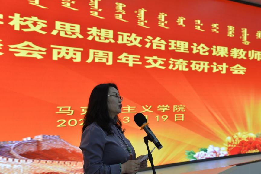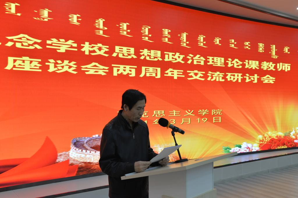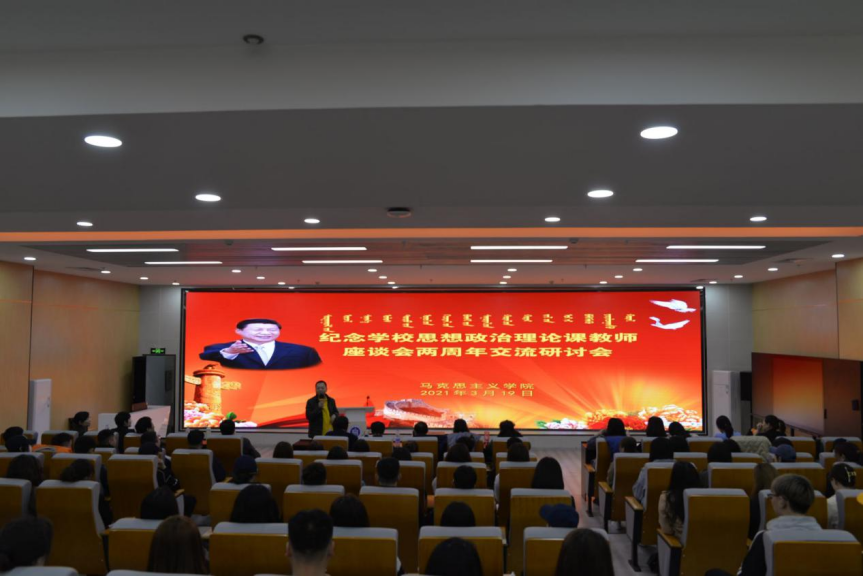 3月19日,在学校思政课教师座谈会两周年之际,马克思主义学院召开纪念学校思想政治理论课教师座谈会两周年交流研讨会,会议由学院副院长吴美荣主持,4位思政理论课程负责人分别作交流研讨,党总支书记额斯日格仓做总结发言,马克思主义学院师生150余人参加了研讨会。