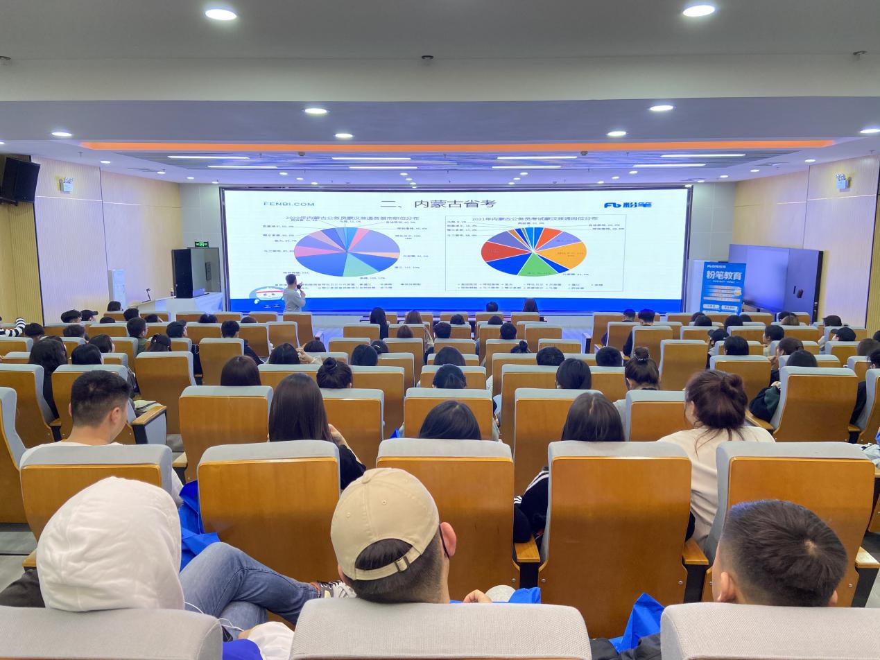 北京粉笔蓝天科技有限公司(粉笔教育)2015年成立,是深受考生信任的培训平台,截止目前已在全国30多个省市建立分校。此次聘请巴音塔拉老师以短视频的形式从科普蒙授公务员、选调生(六项目人员)的报名考试流程;蒙授事业单位考试内容、注意事项;教师资格证、特岗教师、教师招聘考试的考试题型、易错解答;申论考试的备考常见题指导;公共基础知识热点的备考指导等五个方面作了深入讲解。会后,老师们还为每位同学赠送了学习资料,并提供了部分就业岗位。整场招聘宣讲会气氛热烈,收到了良好效果。