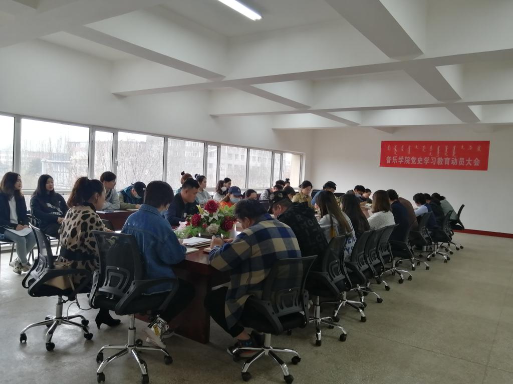 为深入贯彻落实上级和学校党委关于开展党史学习教育工作部署,4月1日下午,音乐学院党总支在音乐学院会议室召开了学院党史学习教育动员大会。学校党史学习教育督导二组组长哈斯同力嘎同志出席会议,音乐学院班子成员、党支部书记、全体党员参加了动员会。会议由党总支副书记、院长齐占柱主持。